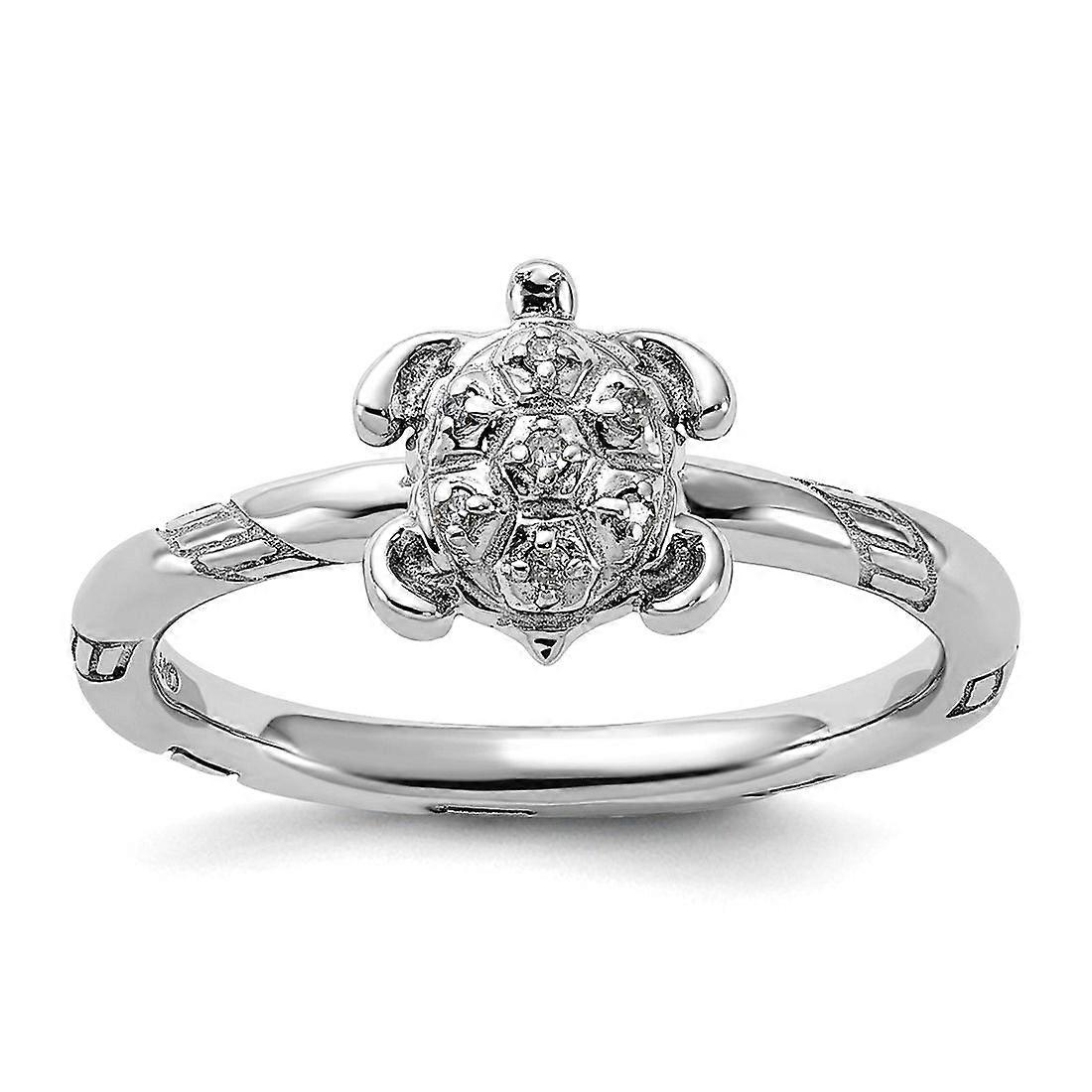 925 Sterling Silver Polished Stackable Diamond Turtle Ring-Stackable-Ring for Women - Ring Size: 5 to 10