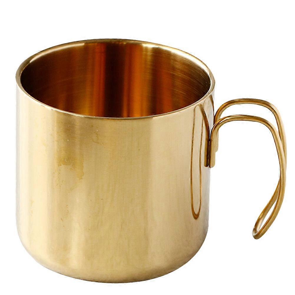 Made of material, and practical, make you use it more conveniently. This mug is made of stainless steel material for use. Handle design make you hold it more easily. Perfect for home, coffee shop, restaurants and hotels. Features - Color: Golden. - Material: Stainless Steel. - Size: About 8.5x8.5x9cm/3.35x3.35x3.54inch. - Made of quality material, for lasting use. - Handle design make you hold it more easily. - Stainless steel mug is simple and fashion for home, office and hotel. - A great gift for your friend and family. - Can be used as a coffee cup, beer mug, drinking cup and more. Package list: 1 x mug