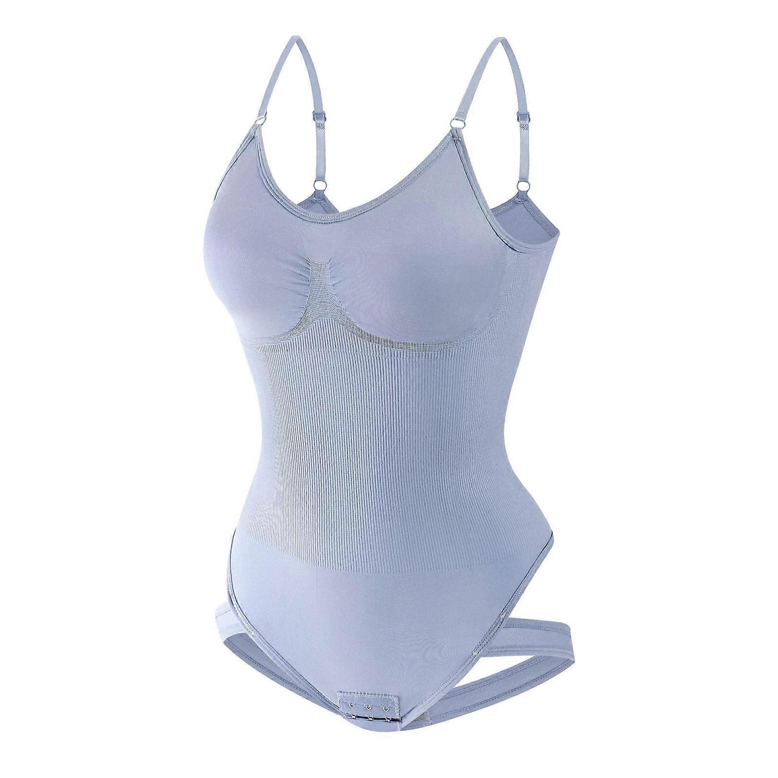 Thong Body Shaper for Women Tummy Control Shapewear Bodysuit Tank Top Round Neck Leotard with Open Crotch Designs Light blue XL