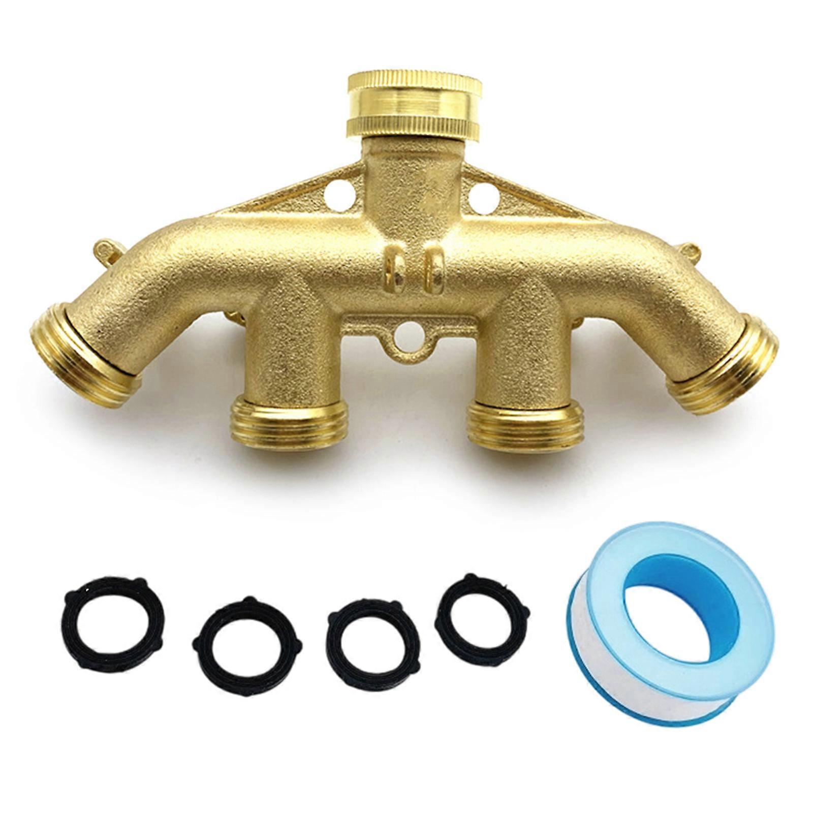 Sturdy 4 Way Hose Splitters with Rubber Washers and Teflons Tape Included for Secure Leakproof Connection Daily Use Multicolor