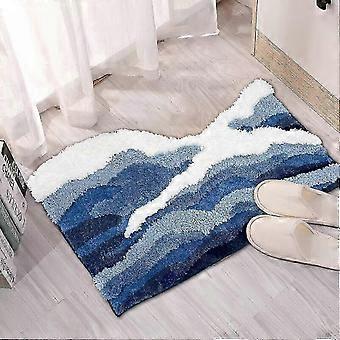 Super Absorbent Bathroom Mats In Blue And White With Japanese Great Wave Design, Tufted Soft Microfiber Bath Rugs, Machine Washable Non-slip