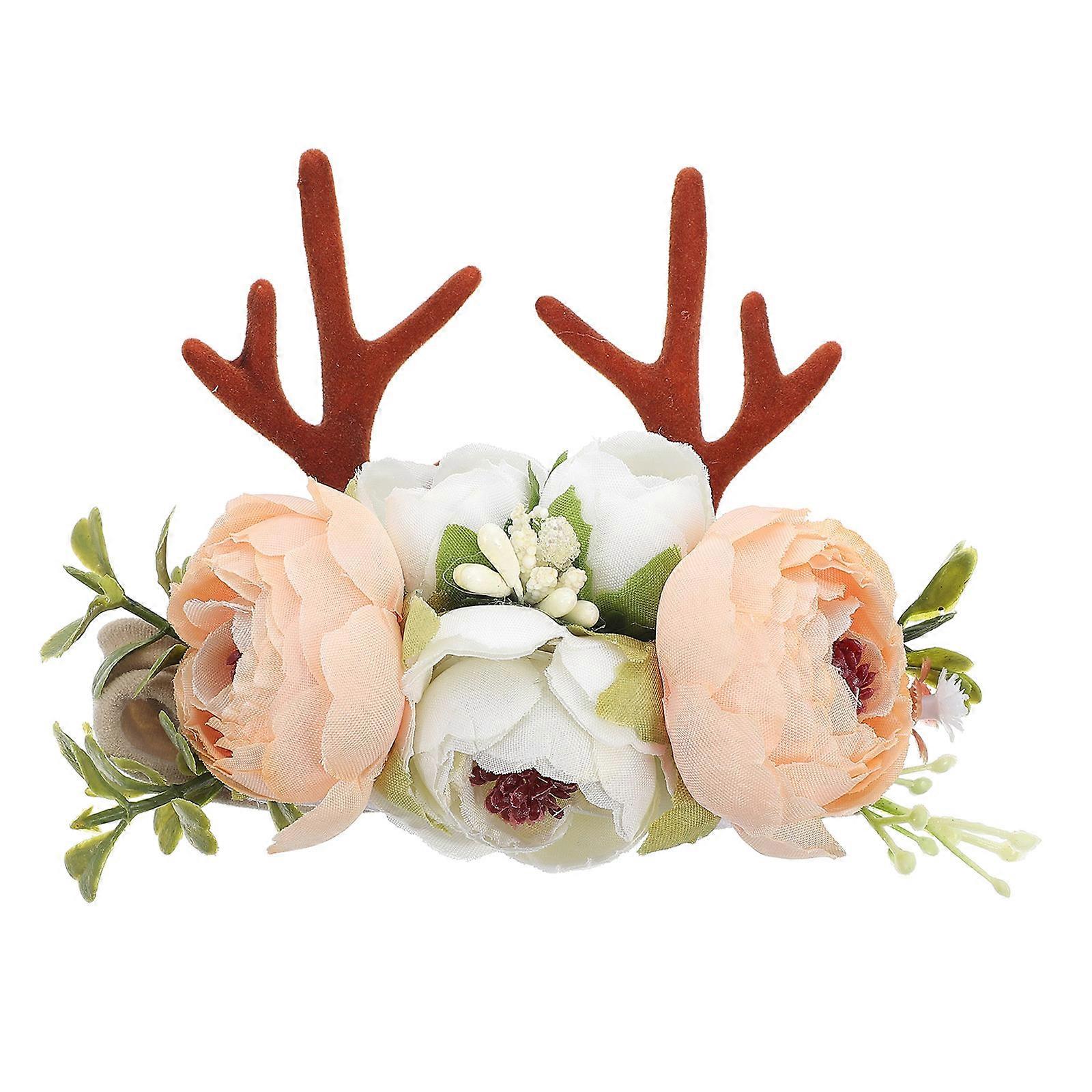 Christmas Flower Headband with Deer Antlers – Festive Hair Accessory for Holiday Costumes and Cheerful Outfits to Boost Yuletide Spirit and Charm