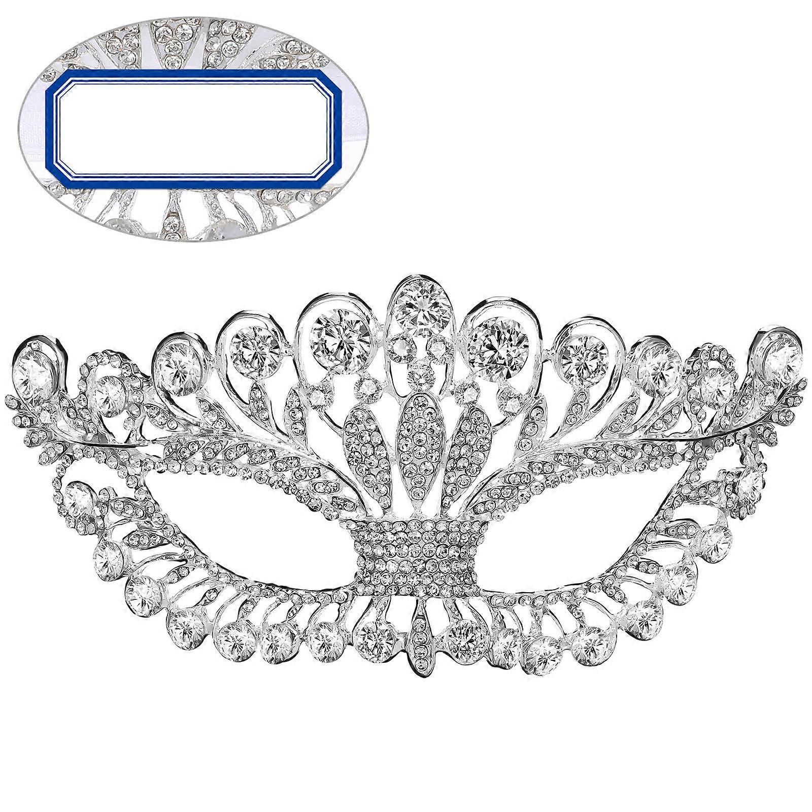 New Years Eve Masquerade Mask Rhinestones Silver Adjustable Ribbon 1Pcs