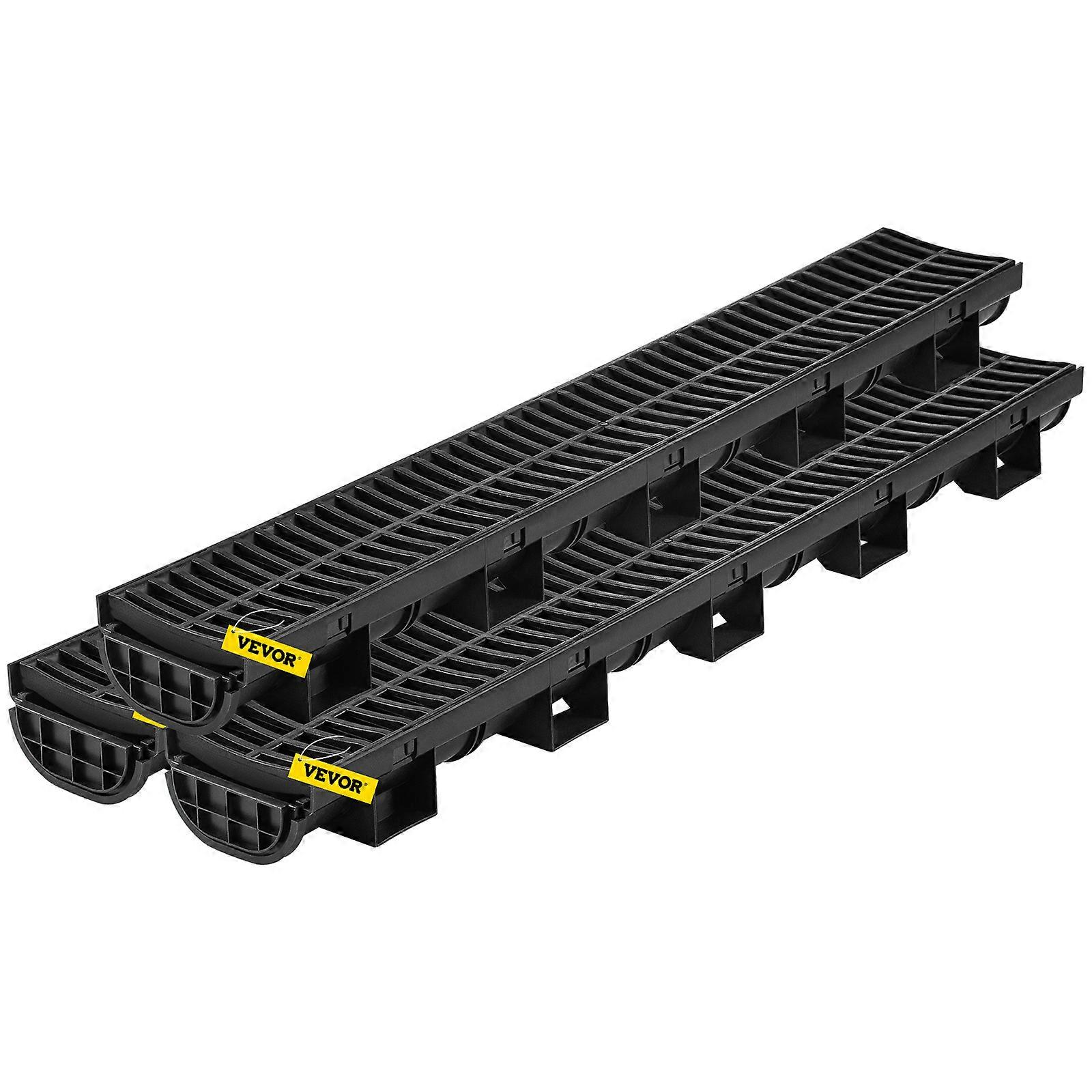 Trench Drain System, Channel Drain with Plastic Grate, 5.7x3.1-Inch HDPE Drainage Trench, Black Plastic Garage Floor Drain