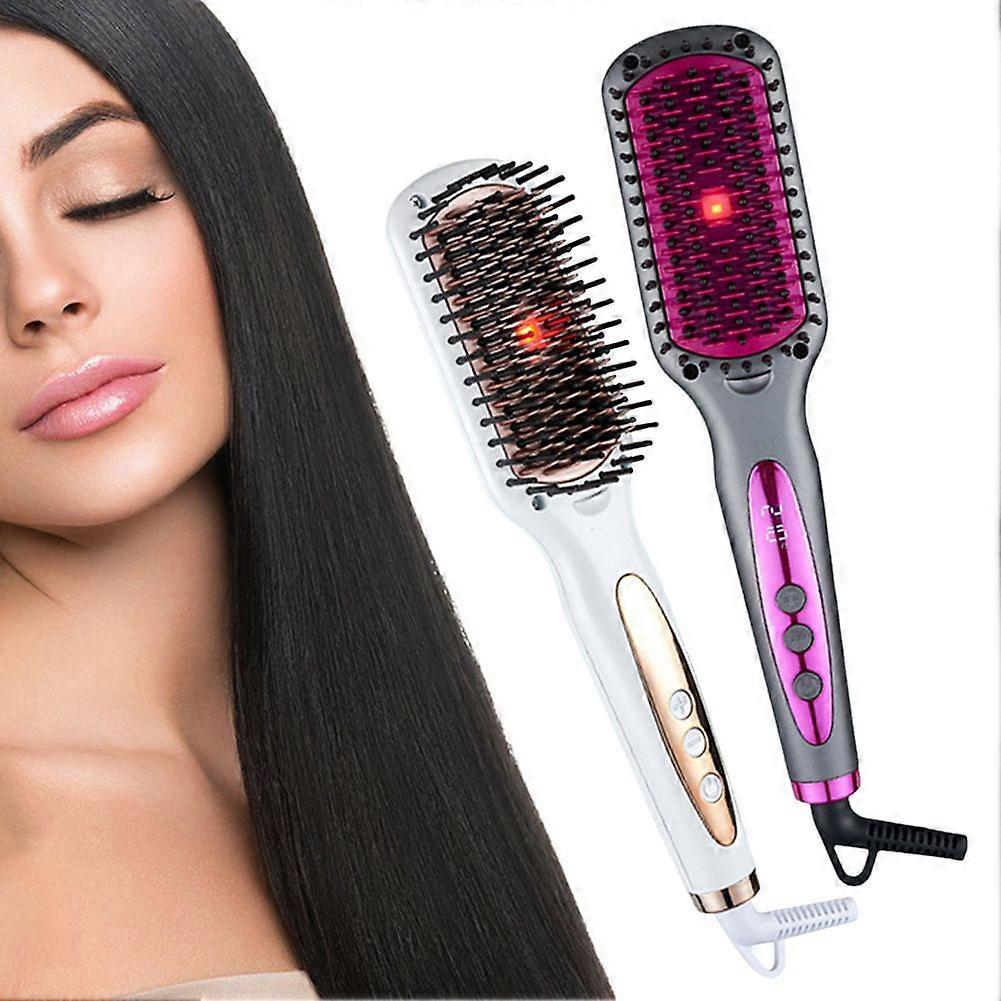 Infrared Hair Straightener Brush Ionic Straightening Brush Anti-Frizz Flat Iron Comb for All Hair Types 110-240V