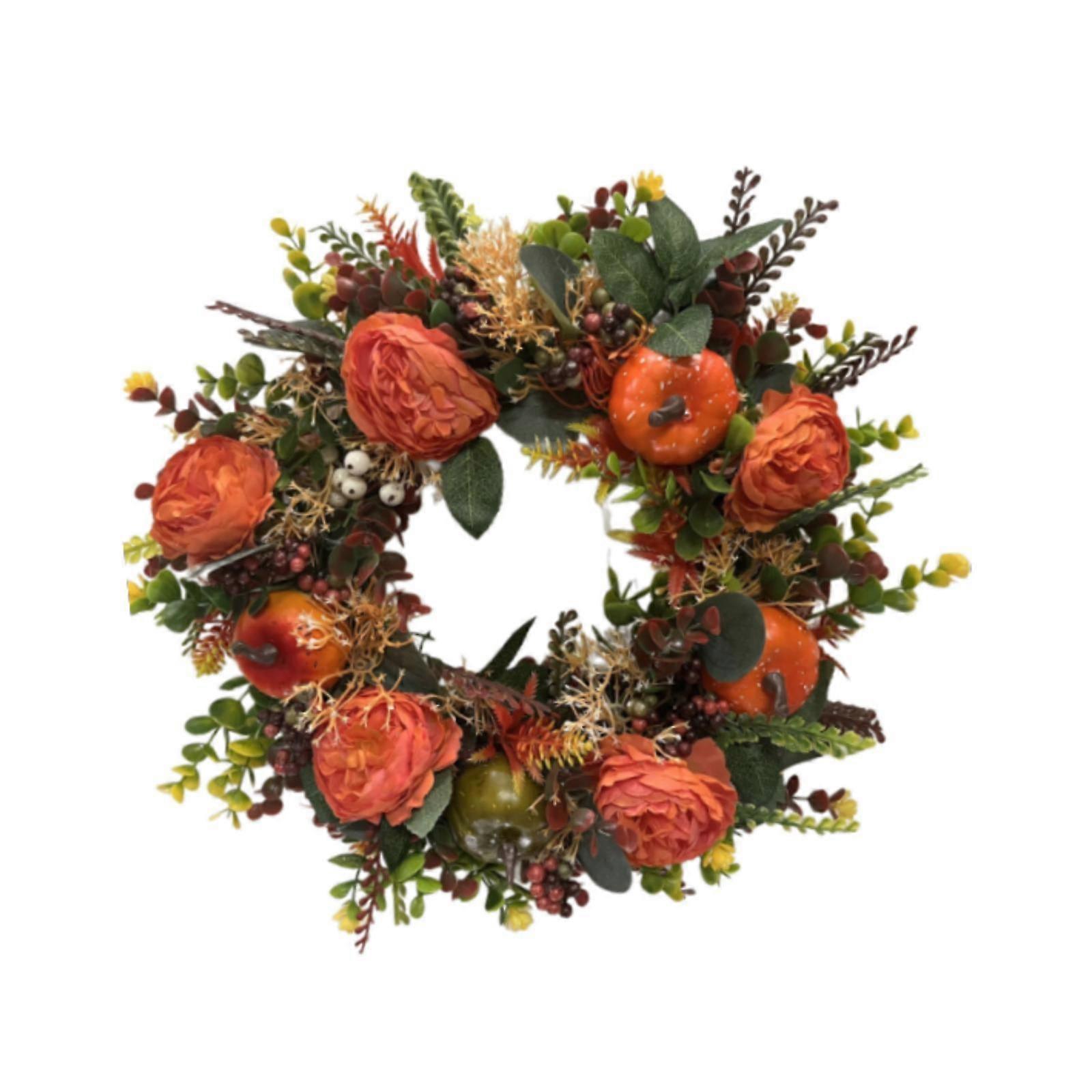 Artificial Pumpkin Fall Wreath Wall Hanging Ornament for Wall Porch Festival