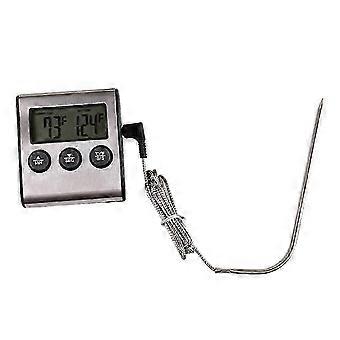 Description This digital food thermometer features an easy to read LCD that displays both the temperature and the alarm set temperatures, great for restaurants, bars and cafes as an economical solution for temperature measurement applications. Features - Color: As shown.- Material: Plastic.- Size: 6.5 x 1.6 x 7 cm.- Easy to use and safe for food. Pre-programmed cooking temperature for different meats and tastes.- Displays preset and actual cooking temperature.- Alarms when target temperature is reached.- Perfect kitchen, bar, restaurant, barbecue use when cooking, grilling, smoking food. Specifications - Temperature Range: -50300.- Temperature Setting Range: 0300.?Packing list: 1 x Digital Thermometer