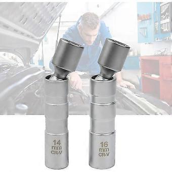 Thin Wall Magnetic Spark Plug Socket Set, Universal Joint, Flexible Wrench, 14mm & 16mm, 2PCS