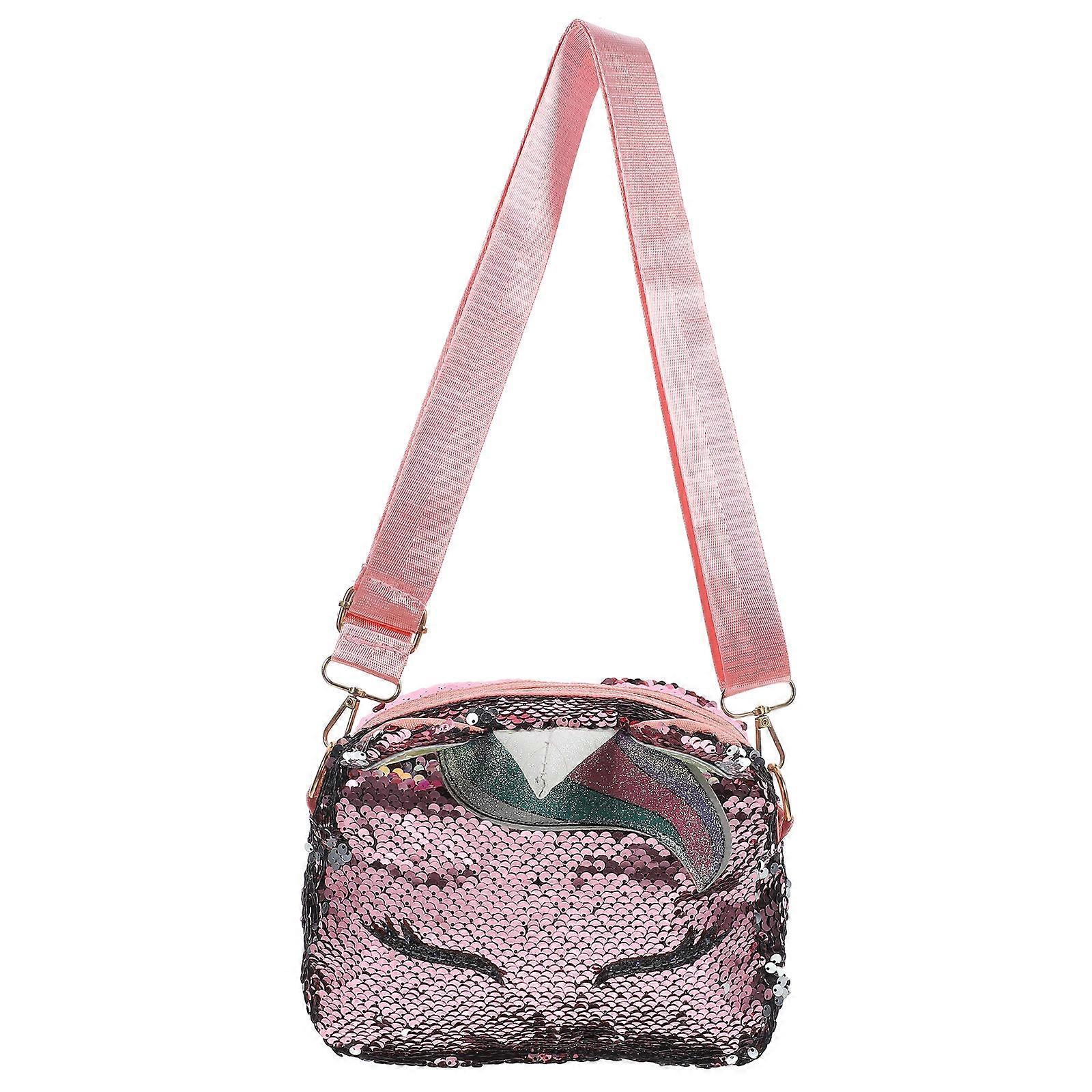 Chain Sequins Crossbody Purse Unicorn Ear Style for Women 3Pcs Pink