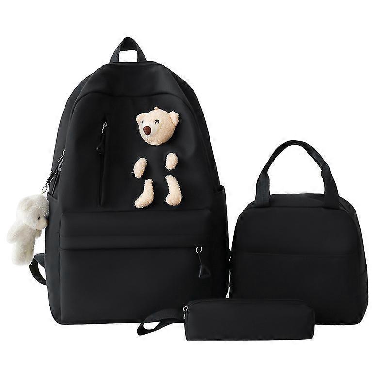 Large capacity cute bear lunch box three-piece travel backpack set for primary and secondary school students