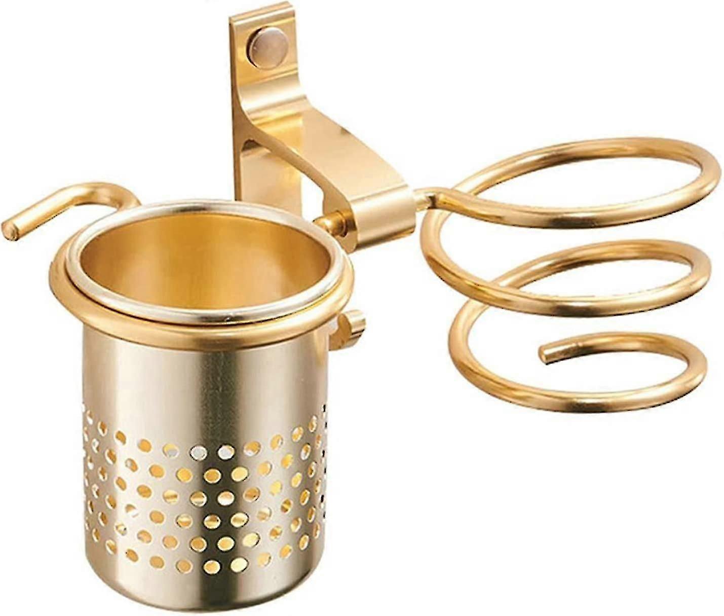 Hair Dryer Holder With Cups Rack Blow Shelf Metal Wall Mount Bathroom Storage Shelf Gold