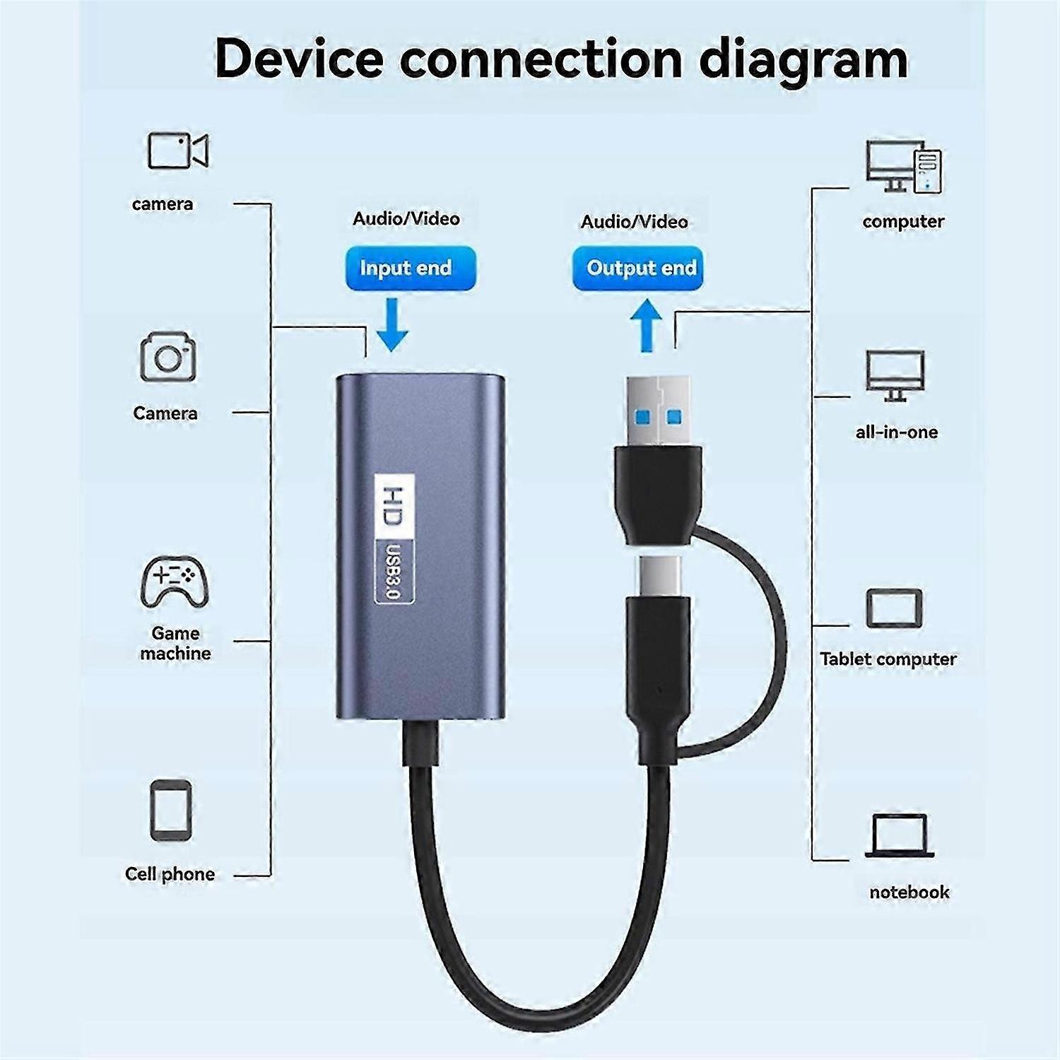 USB3.0 Video Capture Card Type-C HD Capture Cards 4K 30Hz HDMI-Compatible HD USB-A/C Switch Capture