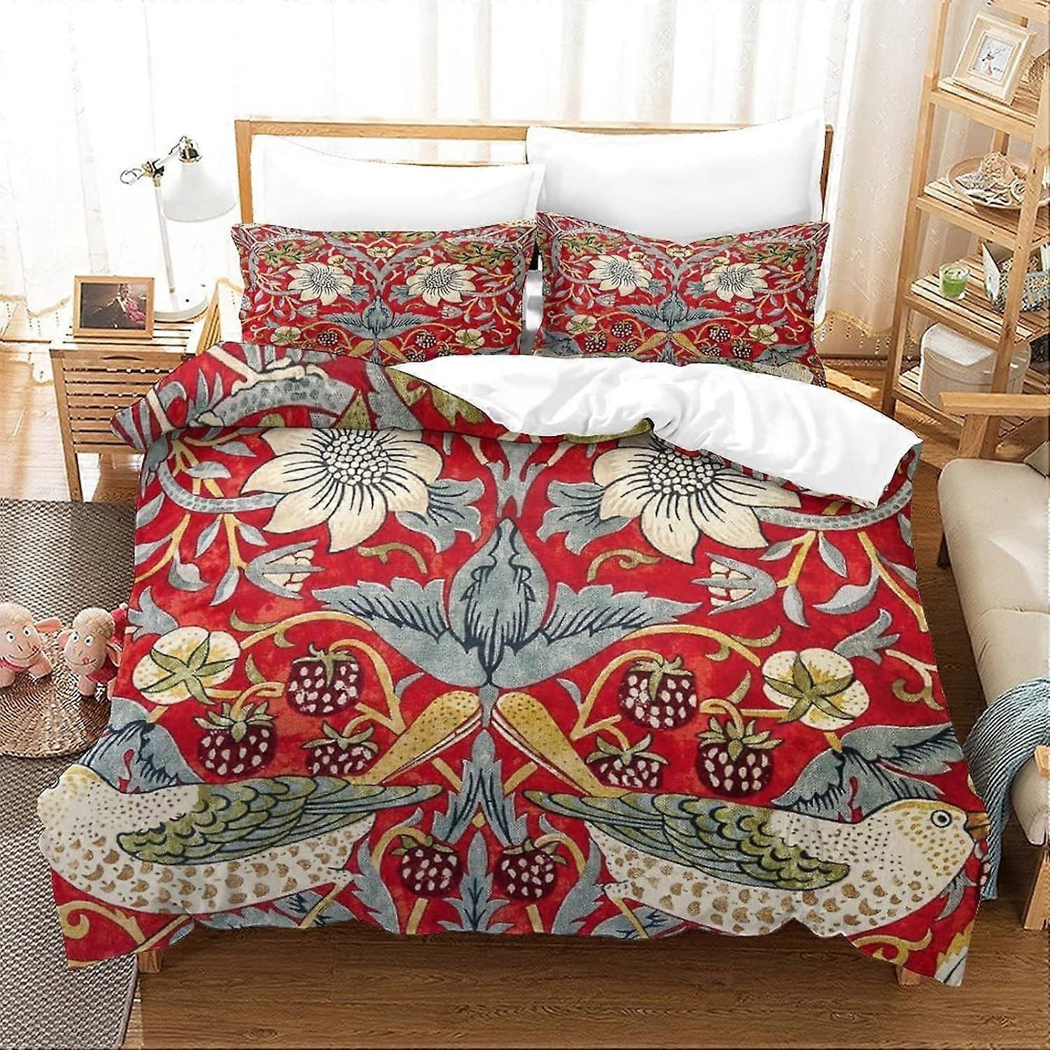 W605 William Morris Rinted Bedding Flower Pattern Floral Watercolour Duvet Cover with Zipper Closure Soft Microfiber Quilt Cover Boys And Girls King M