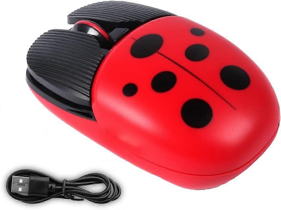 Wireless Mouse, 2.4G Rechargeable Cute Animal Ladybug Pattern, 4 Buttons 1600 DPI Optical Silent Cordless Mice, USB Portable Cordless Mouse for Comput