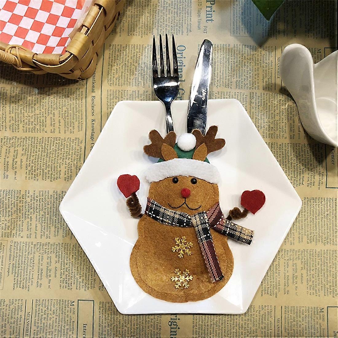 Elk Pattern Tableware Fork Pocket Cover Bag Christmas Decoration