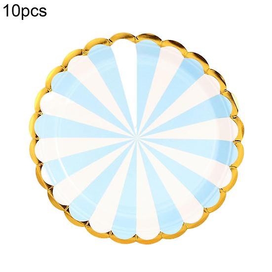 Yousheng 10Pcs 7/9 Inch Paper Plates Disposable Safe Anti-skid Thick Gilding Stripe Paper Dishes Favors Supplies for Birthday