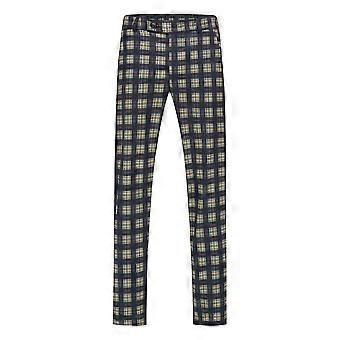 Yynuda Męskie spodnie w kratę z prostymi nogawkami