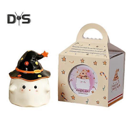 Funny Ghost Milk Cup 350ml Elf Design Ceramic Coffee Mug for Hot And Cold Drinks Cute Office Tea Cup with Hat Lid Halloween Easter Gifts for Friends
