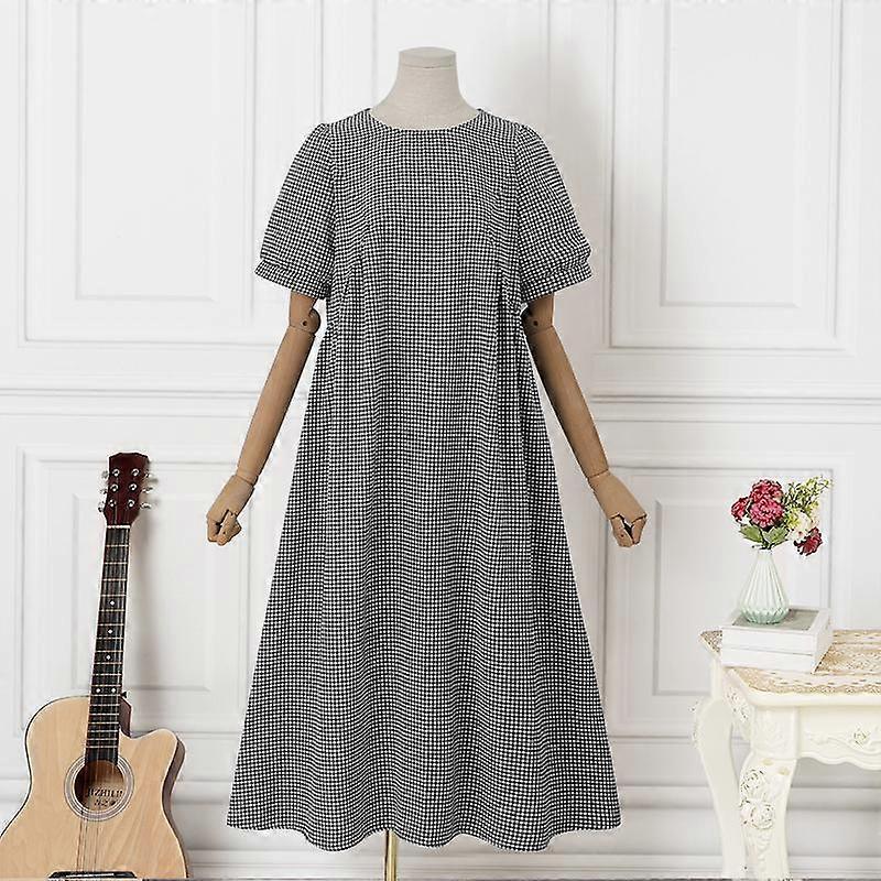 ZANZEA Womens Summer Casual O-neck Short Sleeve Plaid Print Dress