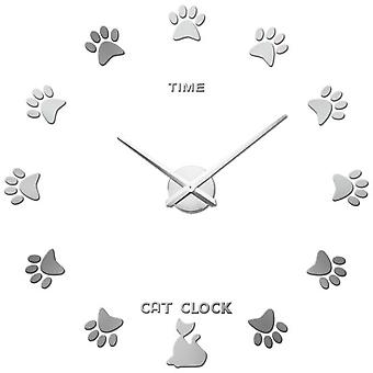 Wall Clock DIY 3D Cat Wall Clock Sticker Living Room Kitty Claw Pattern Frameless Giant Acrylic Wall Clock for Home Decor