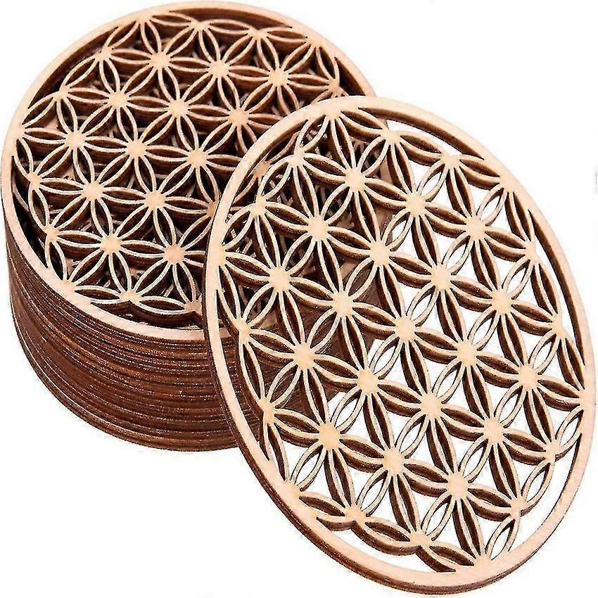 Wooden Coasters Set of 10 with Glass Top 10x10cm Flower of Life Design Home Decor
