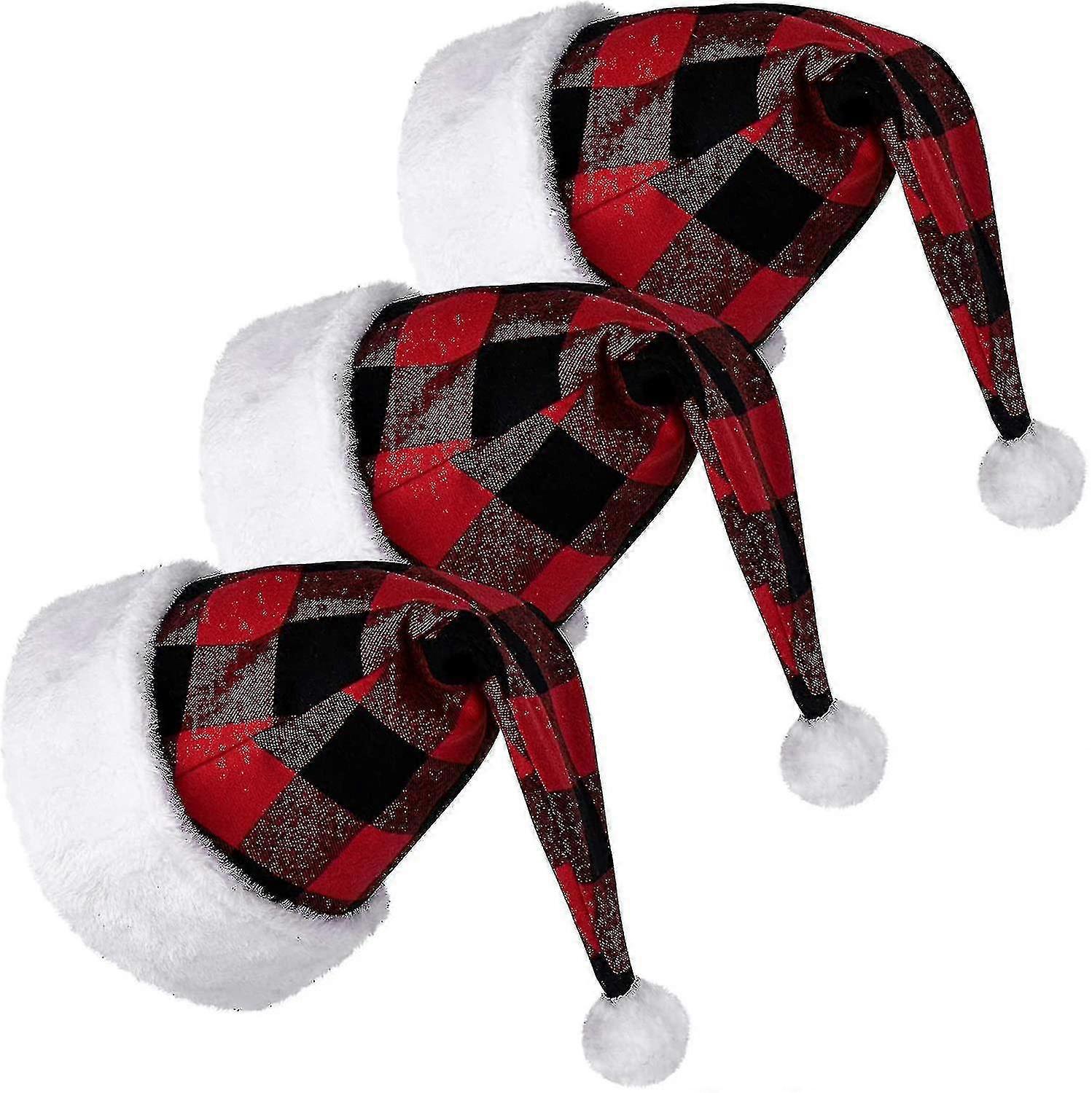 3 Pack Adult Santa Hat Velvet Red Black Plaid Christmas Party Suppliesc p