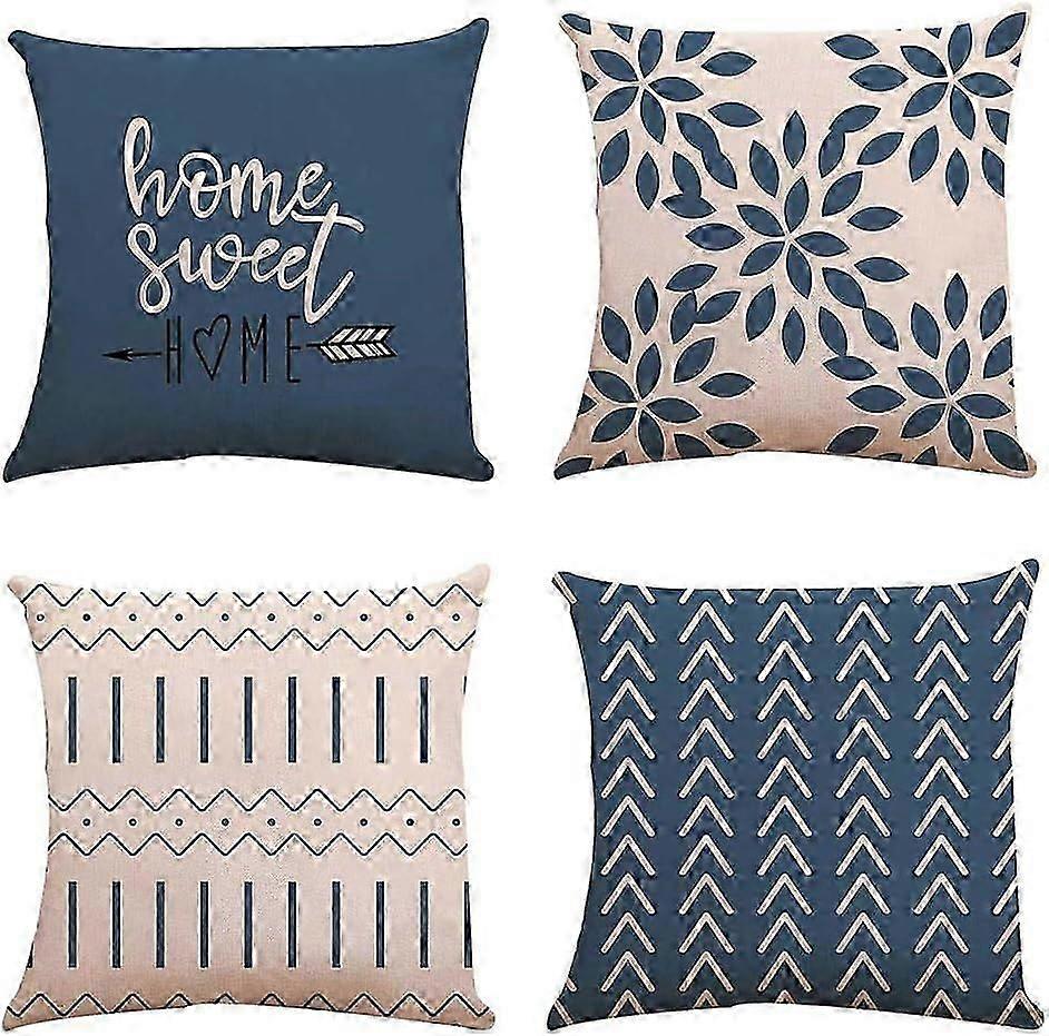 Material- Made of high quality linen and natural environmental protection materials, wear-resistant and durable, is the most suitable choice for you. Size - 45x45cm. The zipper is hidden on one side and is very strong and durable. The pattern is printed on one side only. Friendship Tips- If you want your pillow to be as full as our pictures, it is recommended to use the 50x50cm pillow core. Of course, you need to be gentle and careful in the process. Various Patterns- We have a variety of geometry patterns, as well as Mediterranean, green leaf and tree, etc. And bring a luxurious touch to your home. Other- A set of four pieces, can be machine wash, does not include the pillow core. Description Product Description Material:Linen Synthetics Size:45x45cm. But you can use the 50x50cm cushion core. This way your pillowcase will be as full as our scene graphic. Advantages: 1. Cushion cover is very easy to clean, and not easy to fade. 2. Decorative pillow is made of a powerful stealth zipper that makes it easy to insert and remove pillows. 3. Bright colors add freshness to your home decor. Are you tired of hard, non-wear-resistant throw pillows that fade after a few washes, shrink and lose your softness? Do you want to create a new atmosphere in your home, bedroom or kitchen? Look at us! Our products are the perfect choice for your decor!