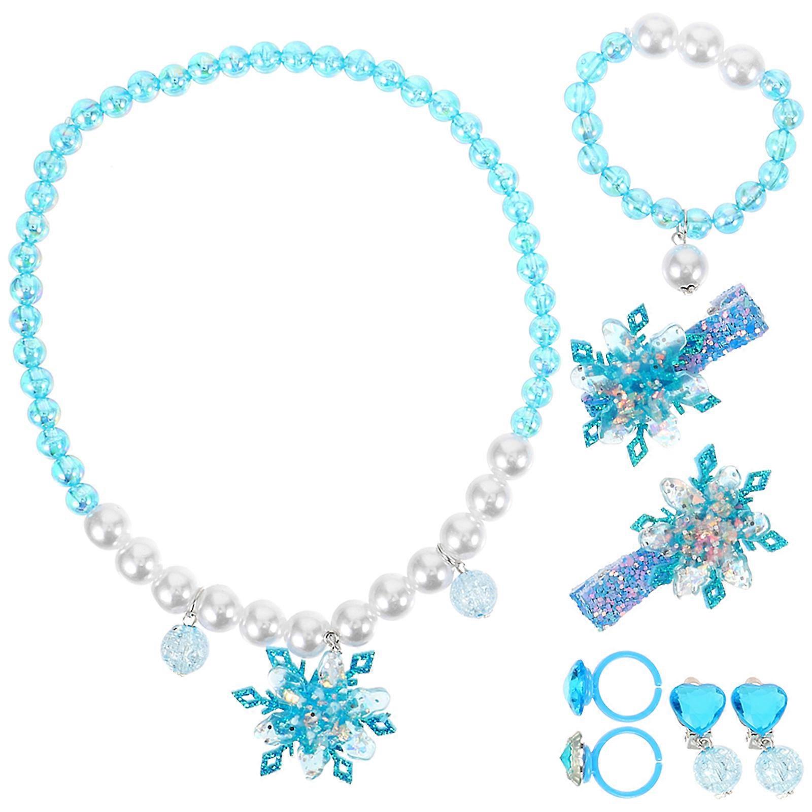 Snowflake Jewelry Set with Necklace, Bracelet, Ring, Ear Clips, Hair Bow, Bead Design for Parties and Special Occasions