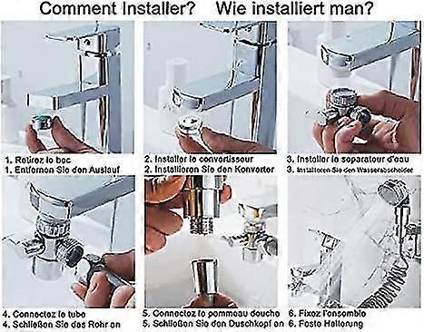 The set includes: water separator, 2m hose, adhesive plate holder, mini shower head, a converter (not included the faucet) Double Control Switch, more convenient: With this external shower head, hair washing is more convenient and will not affect the normal use of the faucet Multifunctional Design: Shower head with 3 modes: rain, massage and spray. Each mode gives you a special shower experience.And also have the stop function Stretchable Hose: Multi-angle stretchable, easy to clean the bathroom.Additional Note: When the hose is fully stretched , the hose length is 2m Before buying, please check your aboard tap size, this kit is suitable for tap: The inside teeth of the tap are 24mm, or the outer tap teeth are 22mm. Not suitable for square faucets and other irregular faucets. Easy to clean and install