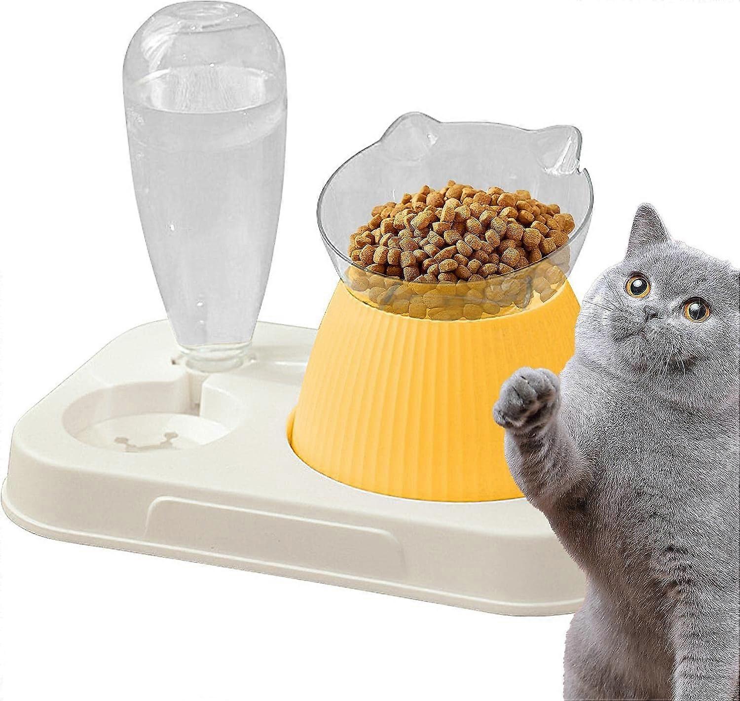 Cat Food Bowl Set, Elevated Cat Bowls with 15-Degree Tilt, 2-in-1 Anti-Vomiting Cat Bowls, Pet Water and Food Bowl Set for Cats and Pets