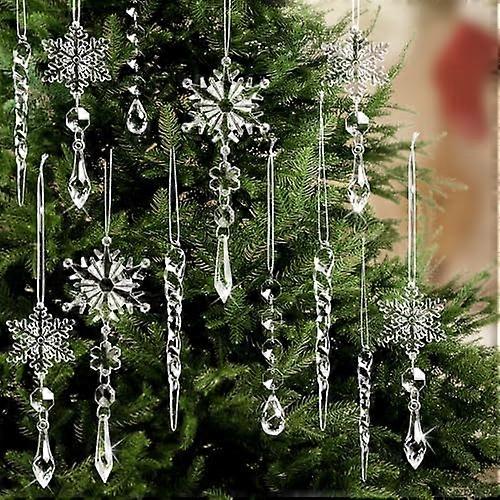 Christmas Ornaments Set for Tree Decorations, Hanging Acrylic Crystal Snowflake Christmas Decoration Icicle Drop Decorations for Winter Christmas Tree