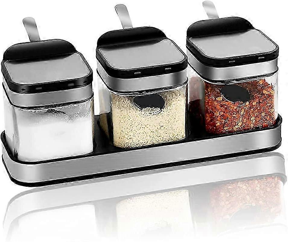 Condiment Jar Spice Container Set - Clear Glass Canisters with Stainless Steel Lids and Spoons