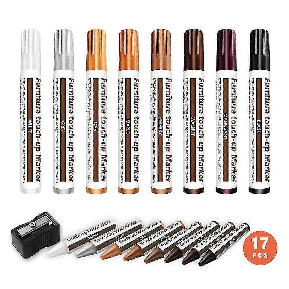 17PCS Furniture Repair Kits Wood Repair Markers Touch Up Repair Pen,Scratch Repair Kit,Markers and Wax Sticks 2025
