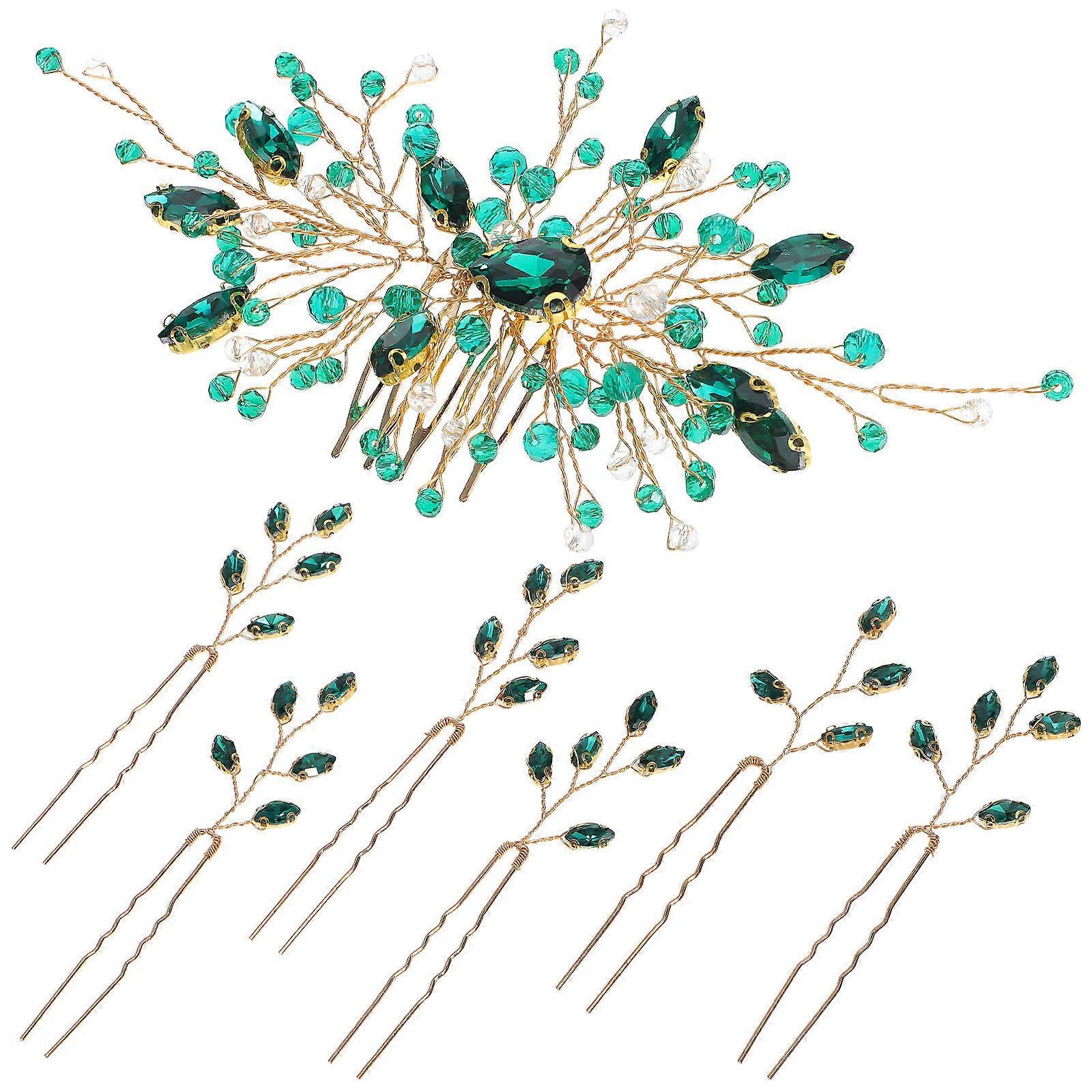 Green Bridal Hair Accessories Decorative Hair Pins for Women 3Sets