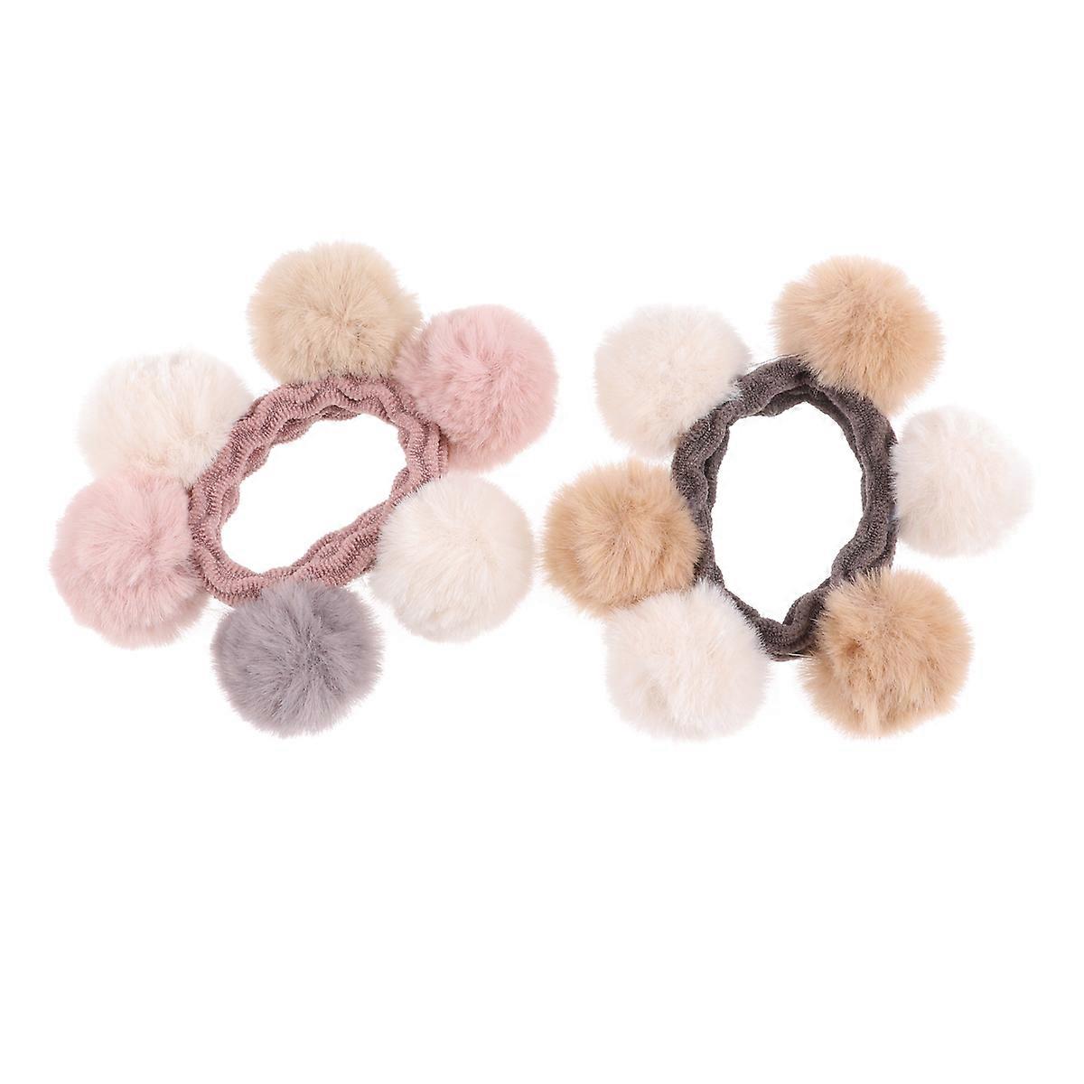 Winter Hair Tie Plush Hairbands for Girls 4Pcs Adorable Hairball Set