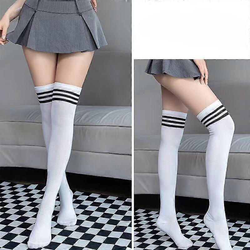 Winter Leg Warmers Women Over Knee Thigh High Socks Black White Striped Long Socks Gothic Y2k Lolita Stockings For Ladies Girls