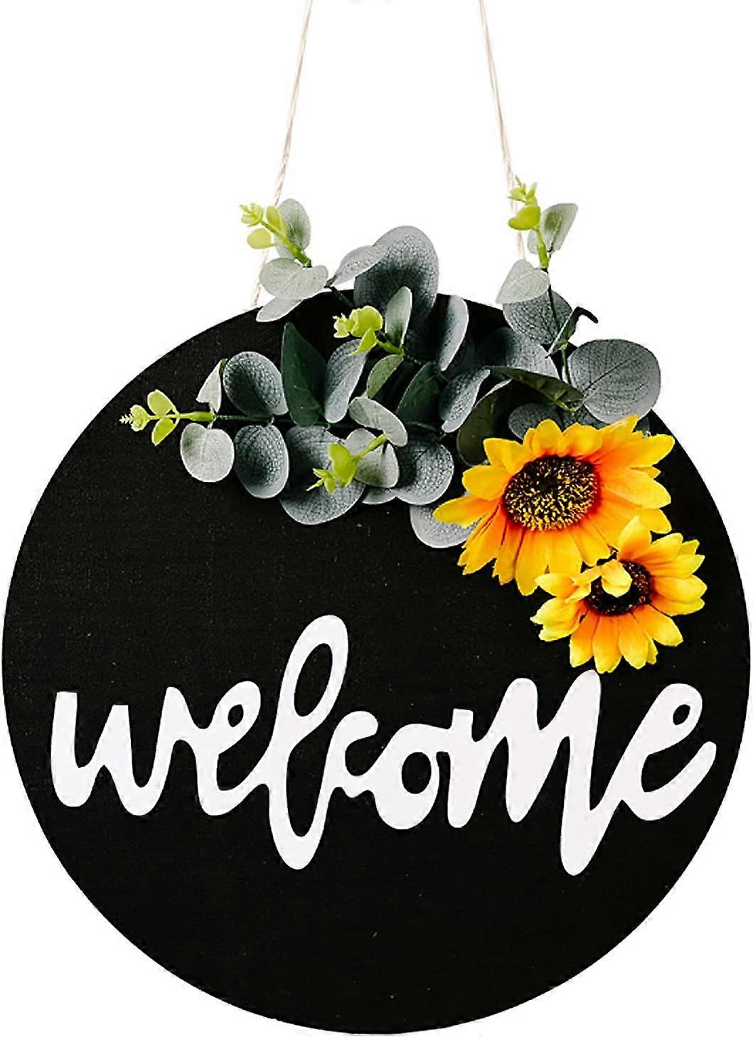 Welcome Sign for Front Door, Farmhouse Wreaths, Porch, Rustic Sunflower Wood Wall Decor