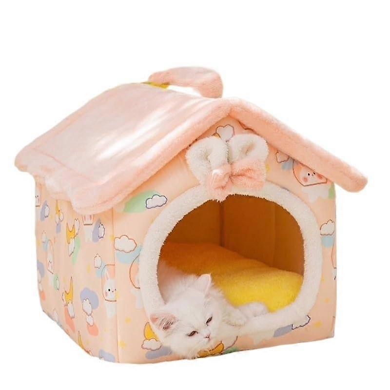 Pets Puppy Cave Sofa Foldable Pet House Indoor Kennel for Small Dogs Cats Winter Warm Bed Soft Mat Nest L for pets up to 14kg 01